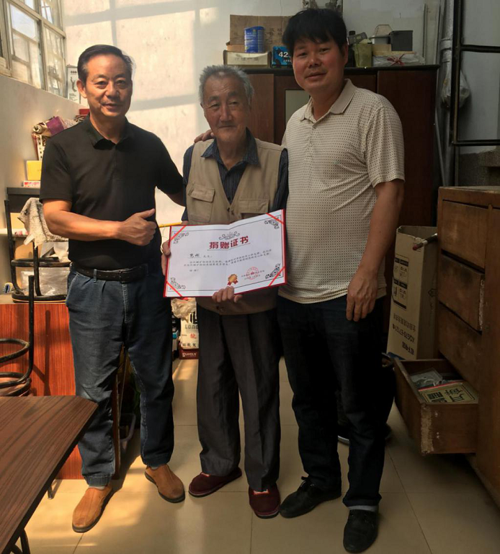 2019年4月26日10点,资源勘查公司经理左琼华、实习实训办主任徐永全和云南腾鑫达建设工程有限公司经理赵宗彥一行三人代表suncitygroup太阳集团到包刚老师家进行慰问并为包老师颁发捐赠证书。