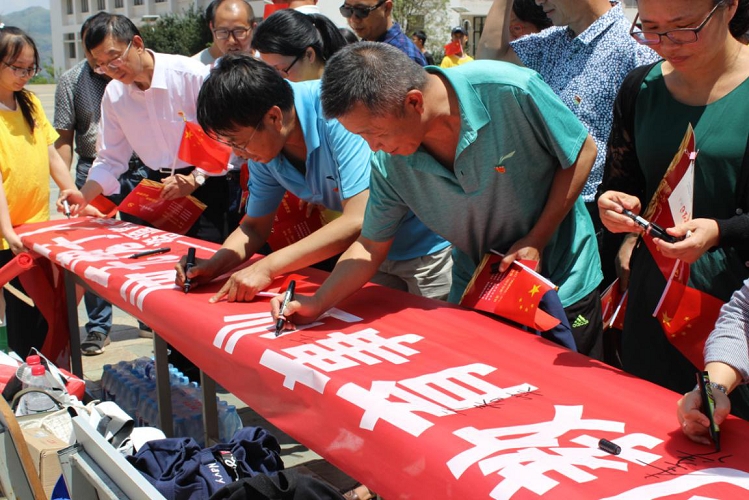 第五项议程,资源勘查公司党总支全体教师党员在“忠诚于党的教育事业,做无愧于人民的教师”的横幅上留言签名,并合影留念。至此,本次活动圆满结束。