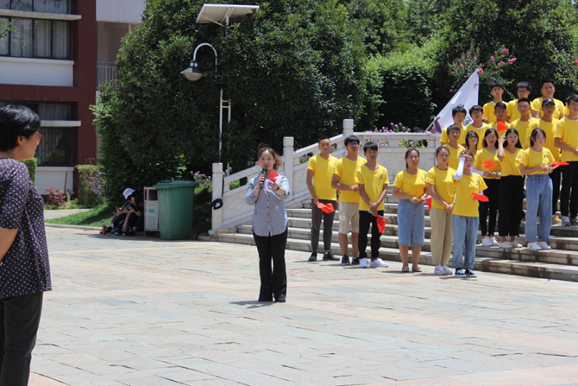 第二项议程,全体教师党员、入党积极分子和发展对象合唱“我和我的祖国”。