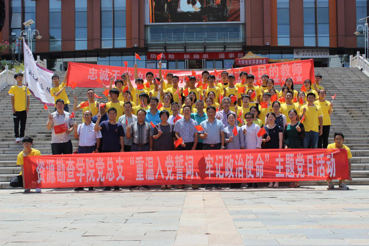 2019年6月28日下午2:00资源勘查公司党总支在国土广场开展了“重温入党誓词,牢记政治使命”的主题党日活动。参加此次活动的有资源勘查公司党总支全体教师党员、发展对象以及入党积极分子,本次活动由资源勘查公司党总支副书记李倩老师主持。