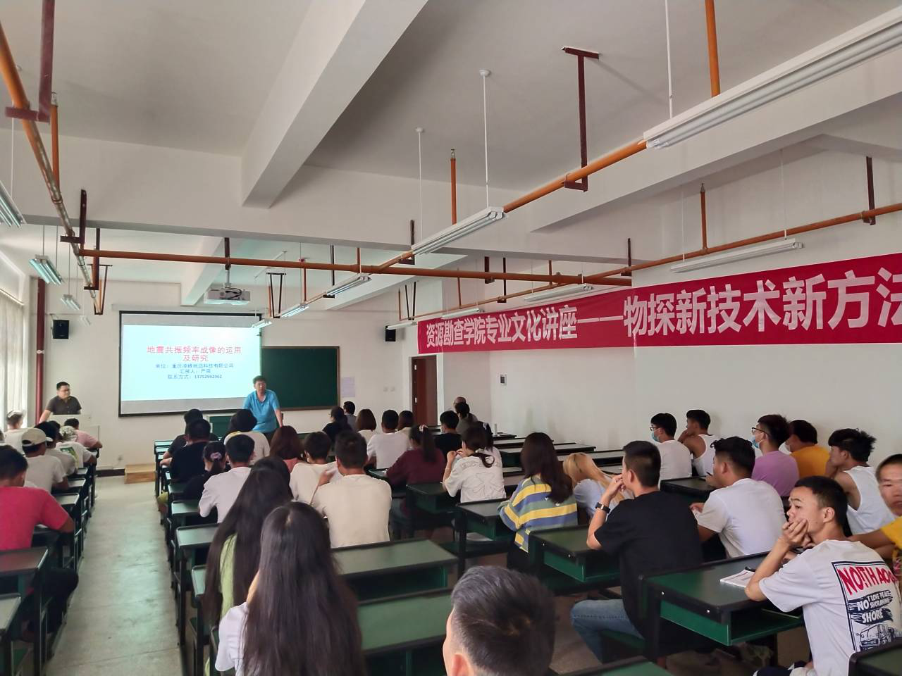 6月12日上午,资源勘查公司邀请了重庆凌峰地迈科技有限公司副总经理严强到校为公司师生开展了“物探新技术新方法”的专业讲座。资源勘查公司党总支副书记李倩、副经理李艳丽、综合办主任刘陈明、学工办主任徐永全、物探教研室主任林家勇、钻探教研室主任郎学伟以及公司各年级员工,共77名师生参加了讲座。