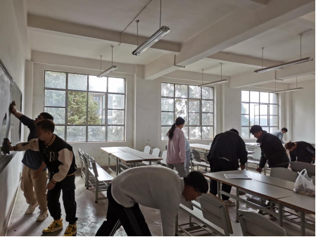 3月16日上午,资源环境公司党总支书记李倩、教师党员代表及在武定校区进行填图实习的218名同学共同进行了武定校区“大扫除”,对校区的校园、教室、宿舍进行了清扫。
